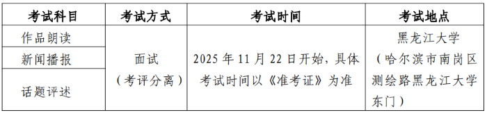 5.考生凭《准考证》和《居民身份证》参加考试,具体时间和地点以准考证为准。考生在面试考试时,有关着装、道具等方面要求应按照《黑龙江省2026年普通高等学校艺术类专业省级统一考试说明》做好考前准备,不得携带考试规定以外的物品进入考场。