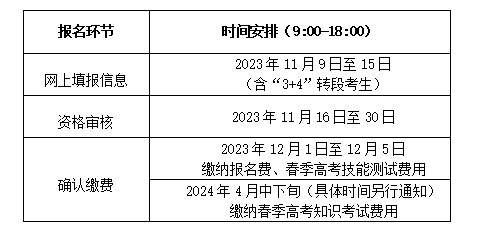 山东2024年春季高考报名时间为2023年11月9日-15日(9:00-18:00)。 春季高...
