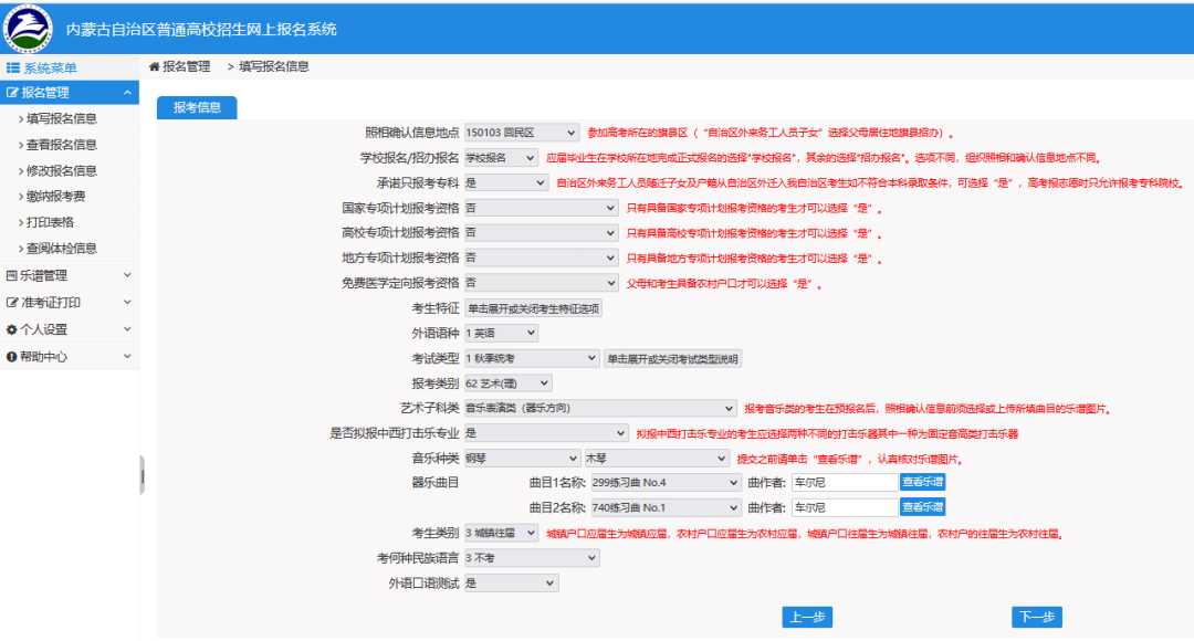 若报名系统中不存在考生要选择的曲目,则须准确、详实填写每首曲目名称(外国作品须填写中文和英文名称)和曲作者等相关信息,同时应在现场确认前在乐谱管理上传对应的计算机编辑的乐谱图片(简谱或五线谱),不得上传人工手写乐谱图片。