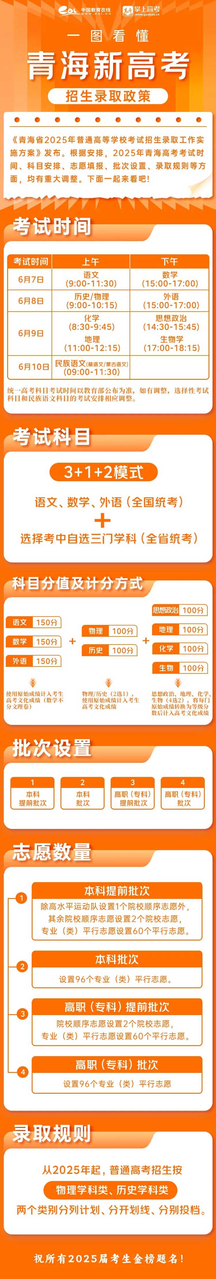 青海2024年高考考试科目有语文、数学、外语3门必考科目,文科(政治,历史,地理)综合/理科(物...