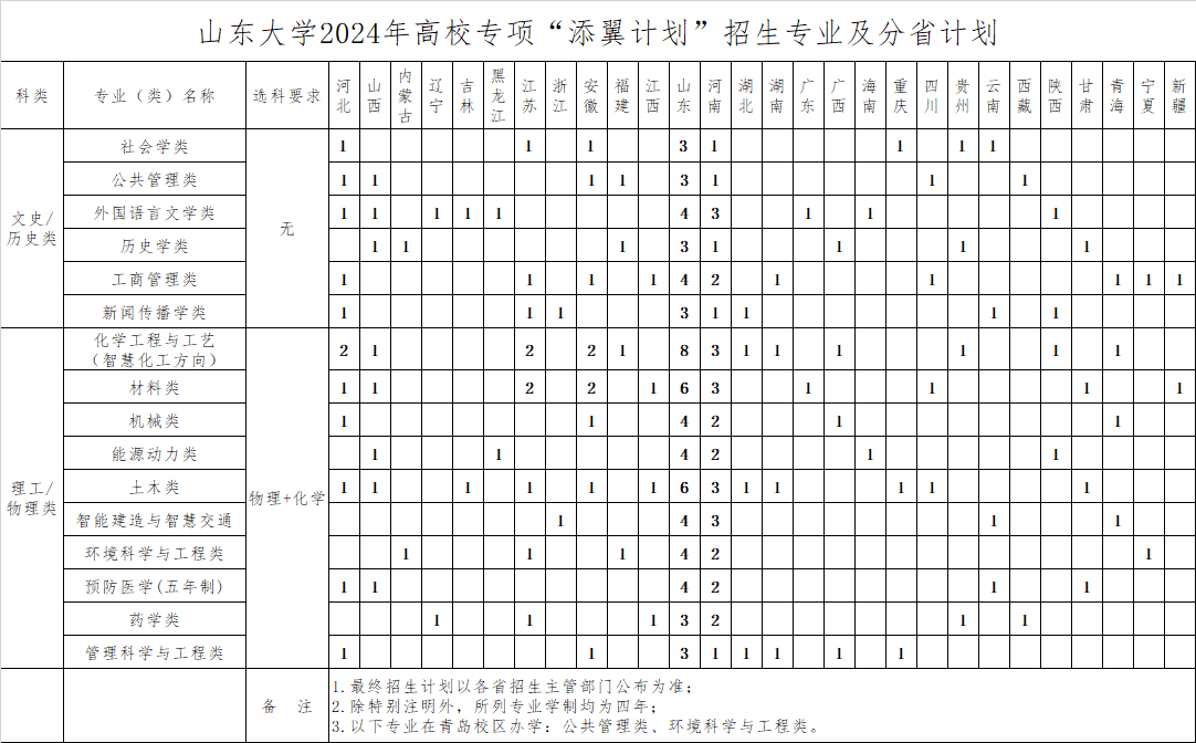 山东2024年地方专项计划实施区域: 济南市 商河县、莱芜区(原莱城区) 淄博市 沂源县...