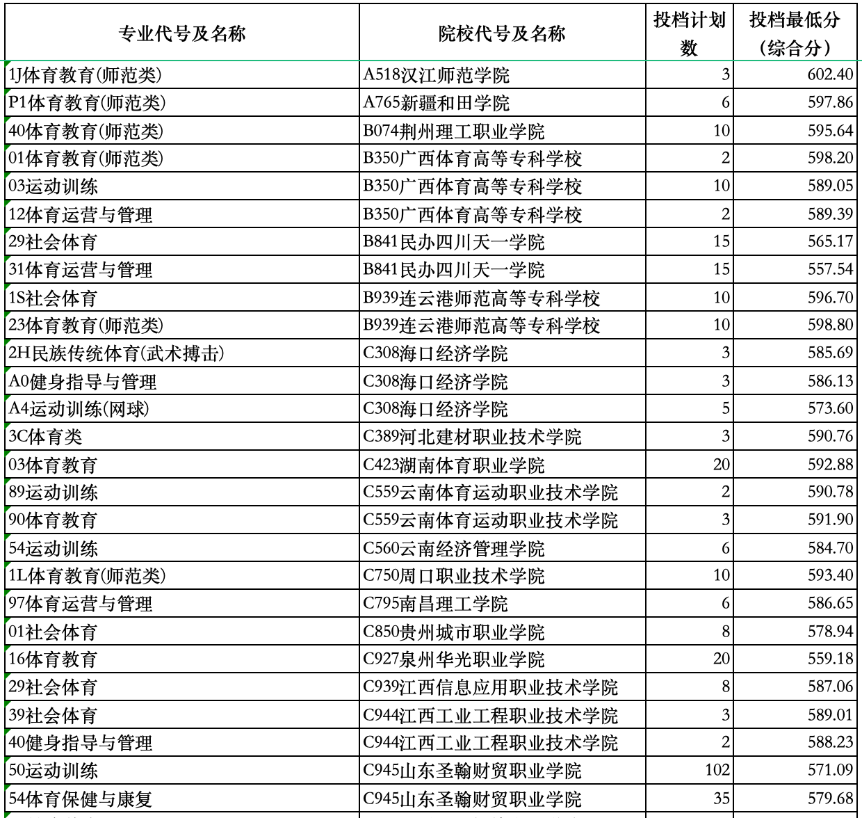 体育类常规批第2次志愿(点击此处查看完整版投档分)