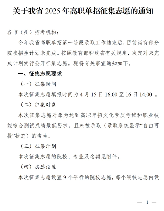 附件:2025年高职单招征集志愿院校、专业及名额(点击查看)