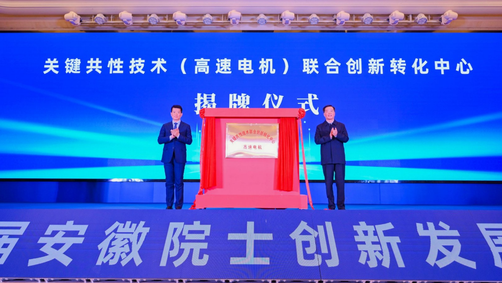 开幕式上举行了关键共性技术(高速电机)联合创新转化中心揭牌仪式。张红文、韩军揭牌。