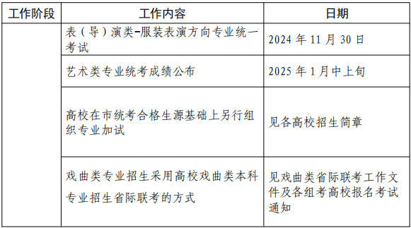 上海2025年普通高校艺术类专业报名考试工作日程表