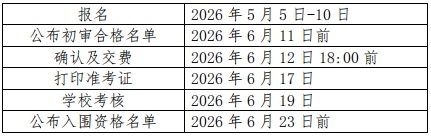 初审通过的考生需于2026年6月12日18:00前登录报名系统进行考试确认,确认后交纳报名费30元、面试费50元,并于2026年6月17日后打印准考证。